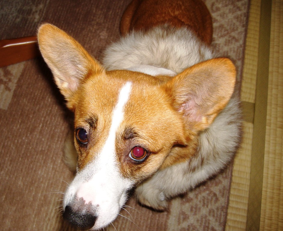 出勤前、下から見上げてビームで怒りを飛ばすメイちんです。