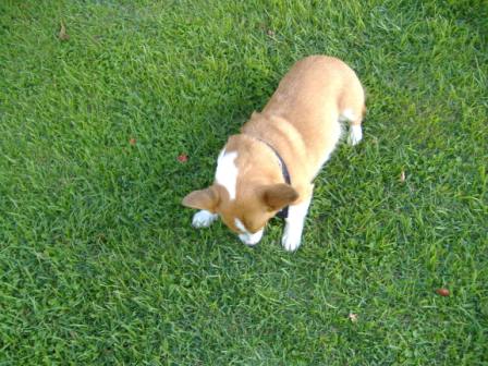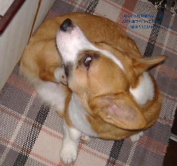 。2003年の5月の連休中でした。教えられた道を行くと、車道から門に入り家まで短い急な坂道があって、そこを登った先の端っこに、なんと!鳥かごか?みたいなケージに入って置かれたメイがいました!ちゅん、と座ってました。あらぬ所を見つつ。でもこの時はまだ目が見えていなかったんですよね。だってまだ生後40日だったんですから・・・・。2ヶ月くらいがいいと聞いていましたが、ブリーダーさんが言うにはコーギーくらいの中型犬なら大丈夫ということで