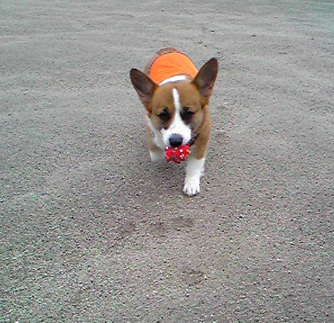 兄弟の「海くん」(*やはりディスク大大大好きコギです)が前肢を骨折したと聞いた時から、あまり無理させないようにはしていたんですけど・・・(骨格とか体質は遺伝的なものってあるでしょ?)