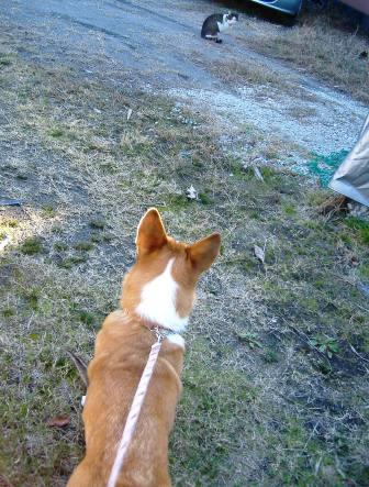 近所の飼い猫とくっ付いたりするので、全ての猫がOKだと思ってるみたい。