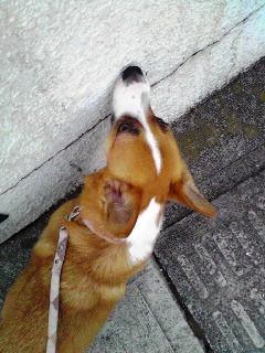「家々の塀を嗅いで歩くのが楽しい♪」