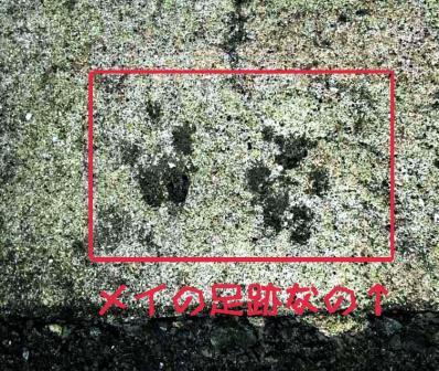 今日お散歩の時にいつも通っていた道を通り、以前水道工事の際、固まっていなかったセメントに残ったメイの足跡を撮って来ました。