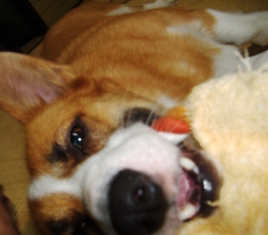 ミッキー君はミニチュアダックスなのでこんな可愛いおもちゃでもOKなのでしょうね・・・