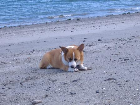 波打ち際まで来て何とか私の呼び声に応えようとする様子。だが入らない