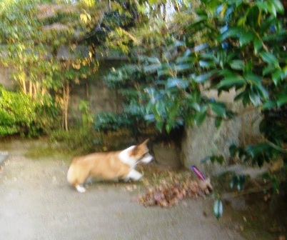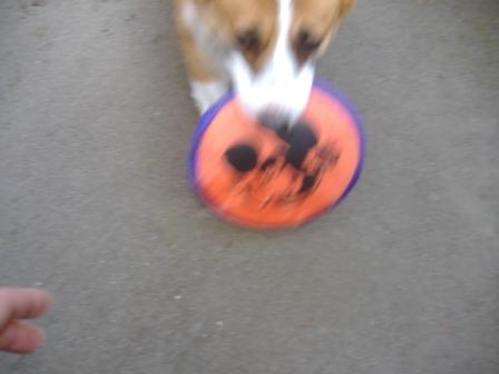 散歩中は特にコレという写真はなかったので、帰宅後フリをしてるとこ頑張って撮りました。(というより散歩にフリスビー持って行くの忘れたんです・・・)