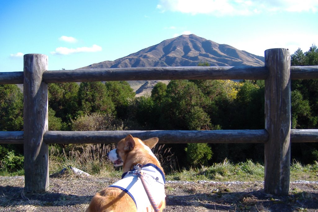 草千里はペットの入場は出来ず、駐車場を二人でウロウロしました。修学旅行生が多かった!