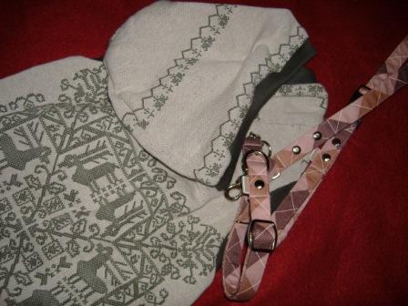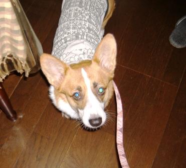 今回は落ち着いたカラーのようでしたので、ピンクのアーガイル模様のカラー&リードにしてみました。