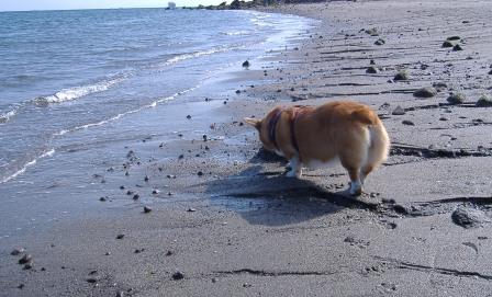 メイちん初めての砂浜探索中。「ウイルス居ますか?」