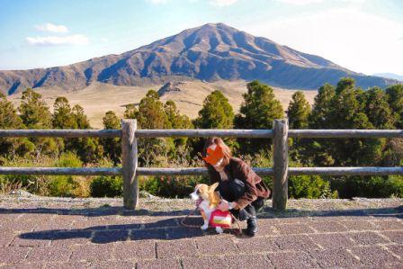草千里はペットの入場は出来ず、駐車場を二人でウロウロしました。修学旅行生が多かった!